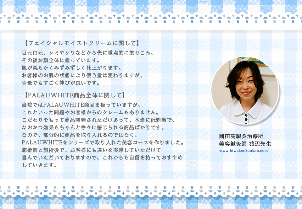 パラオ白泥抽出物、スクワラン、セラミド3種、ヒアルロン酸Na、フィトスフィンゴシン、オウゴン根エキス、クズ根エキス、アロエベラ葉エキス、クロレラエキス、ポリクオタ ニウム-51などの34種の機能性原料が保湿力を発揮します。さらに8種類のアミノ酸が お肌を整えます。